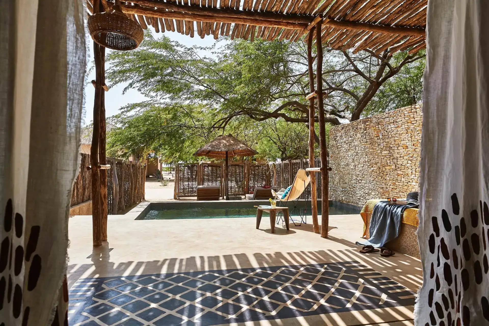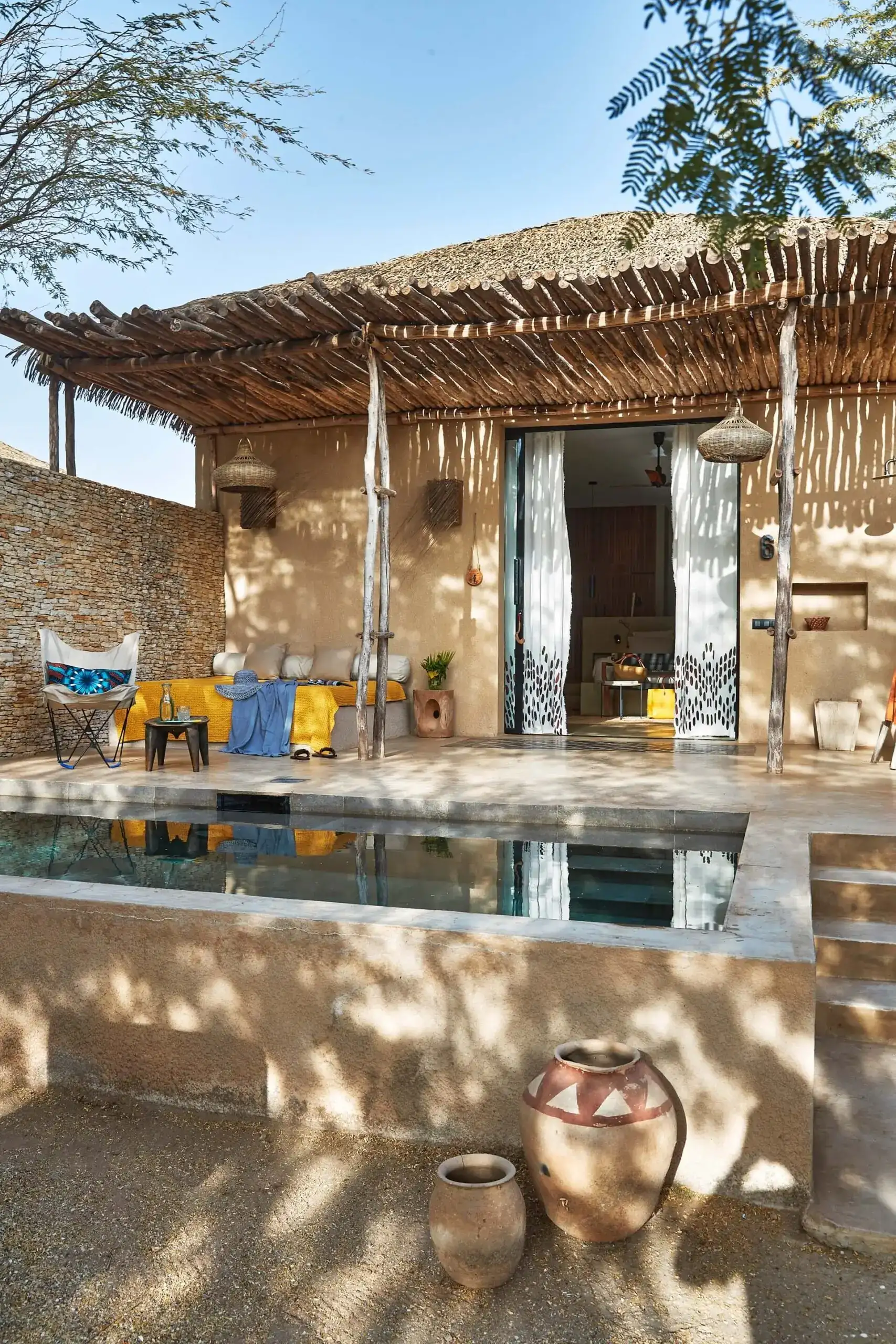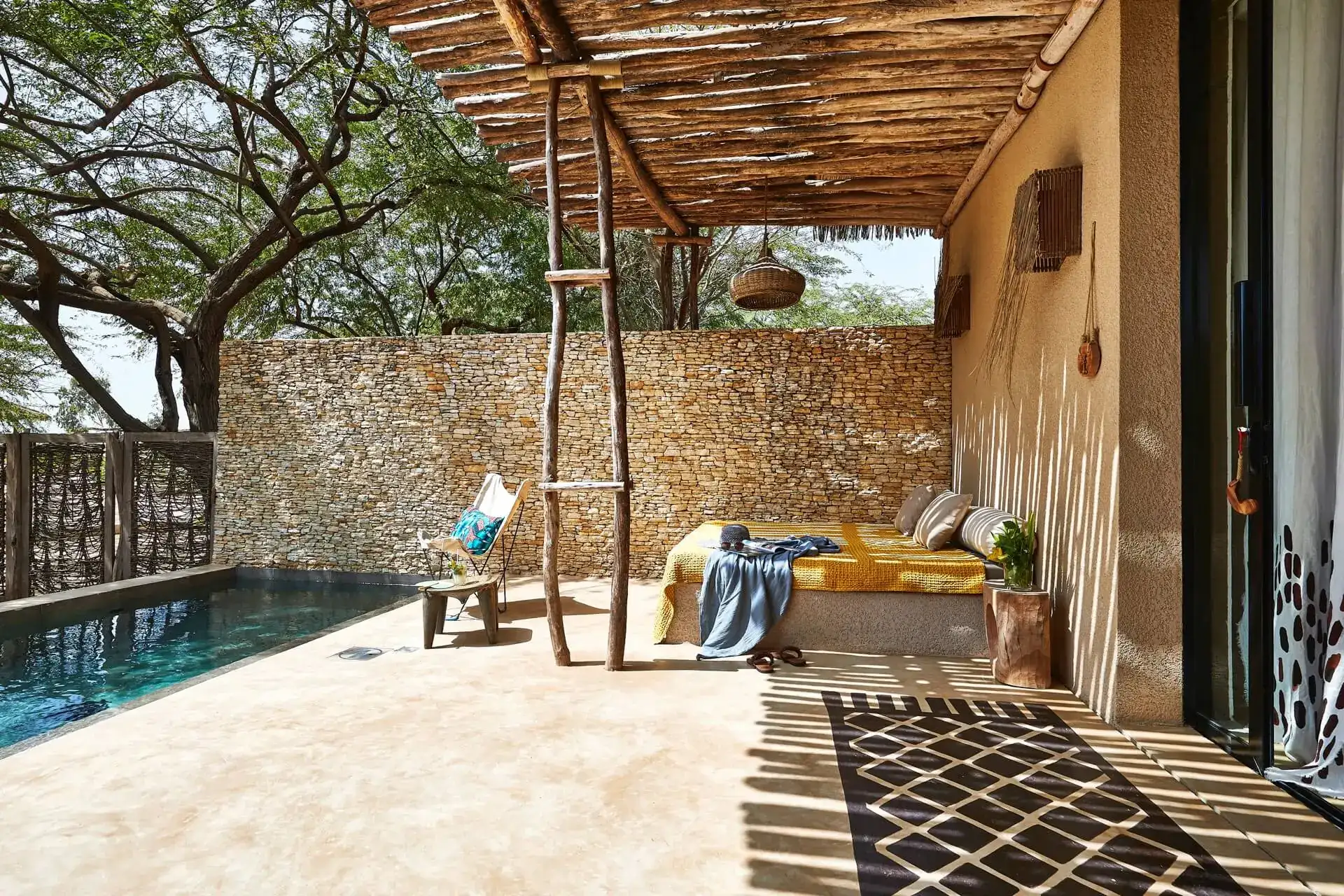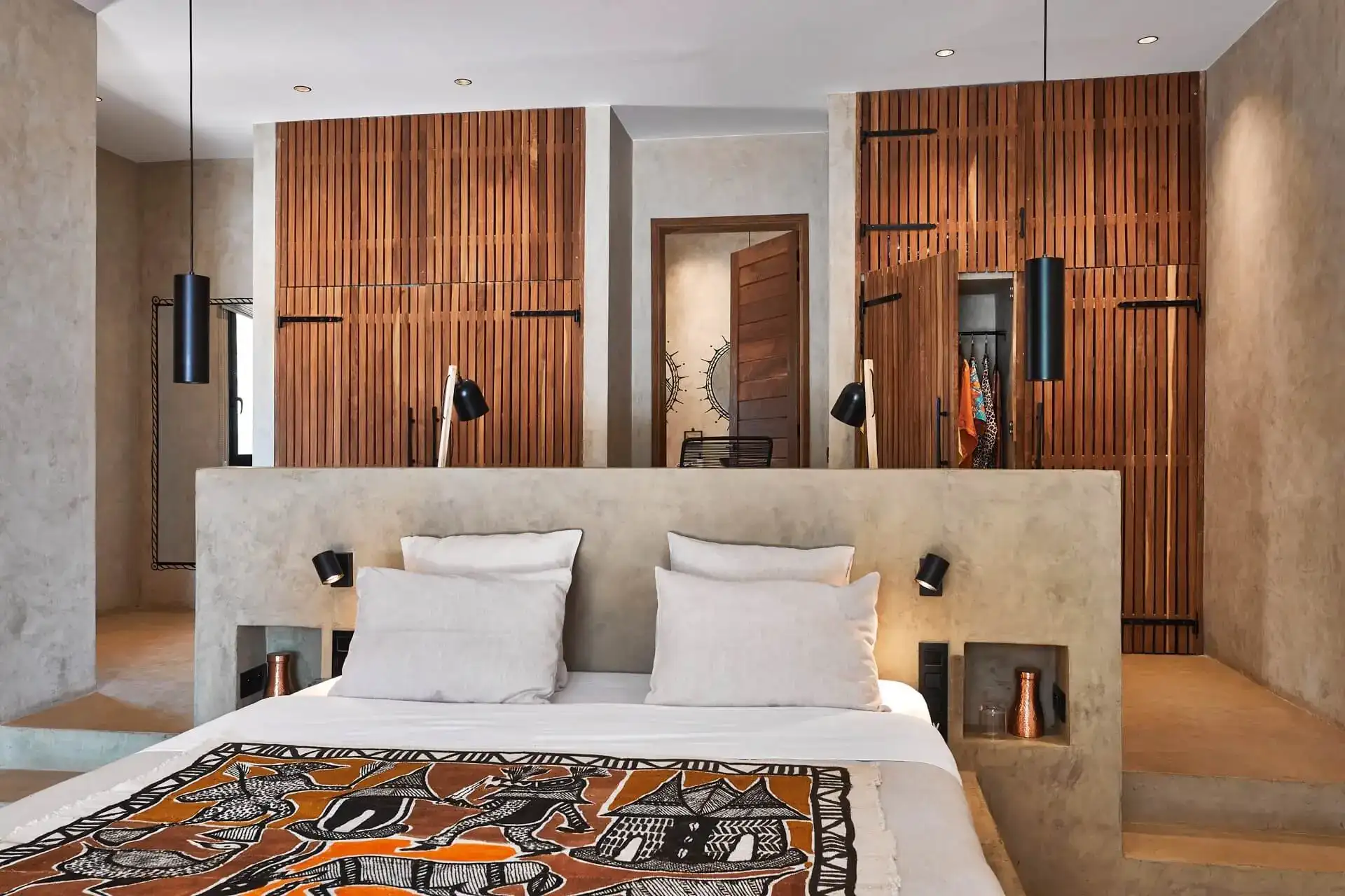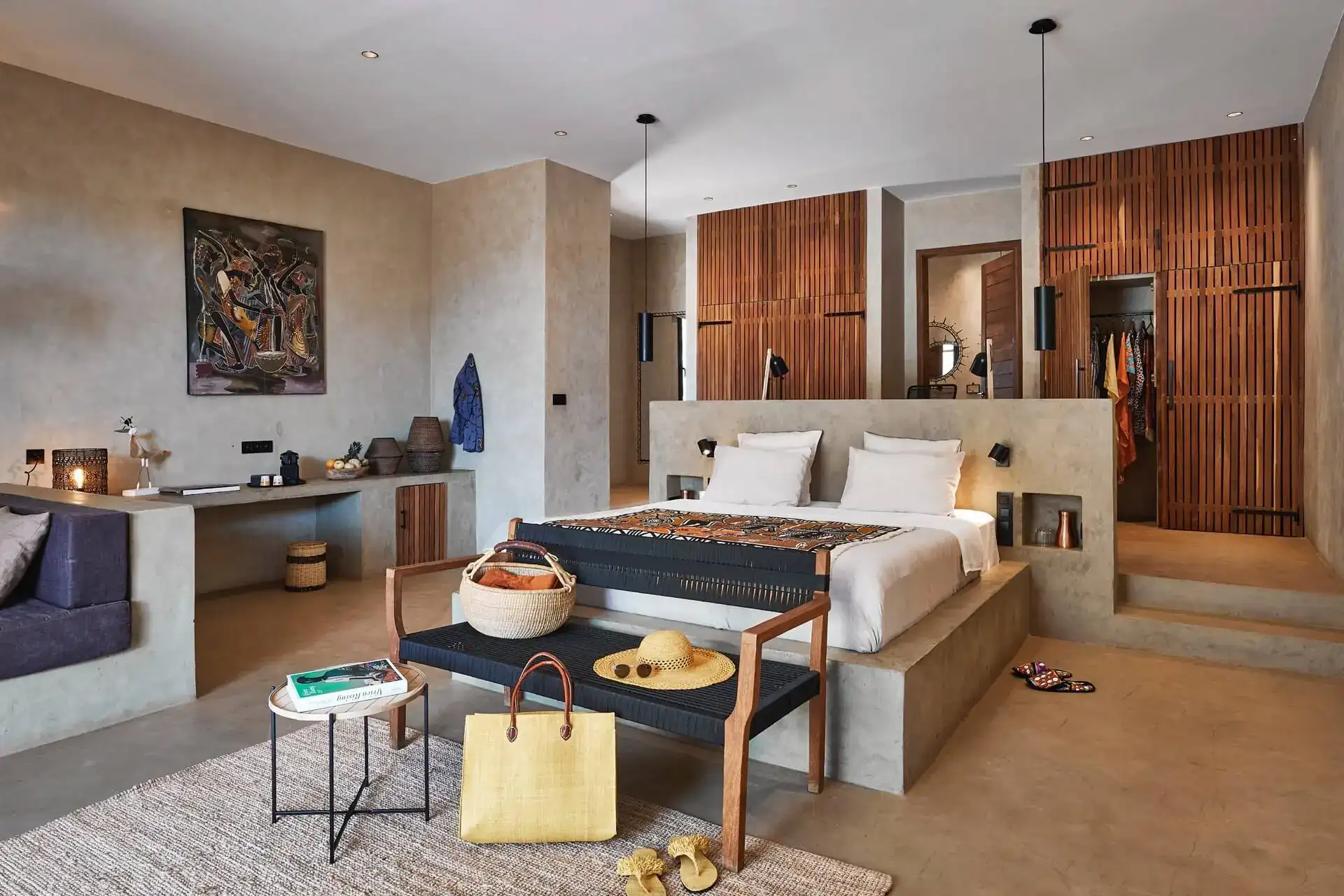 Les chambres sont modernes et luxueuses avec une décoration mêlant l’artisanat local et design.