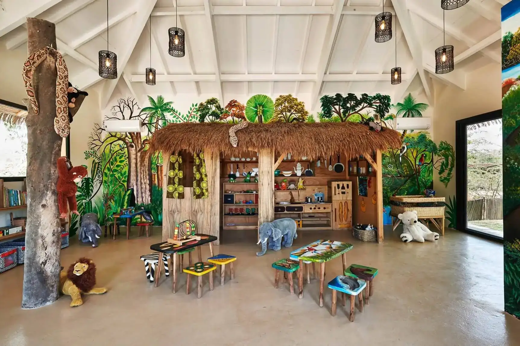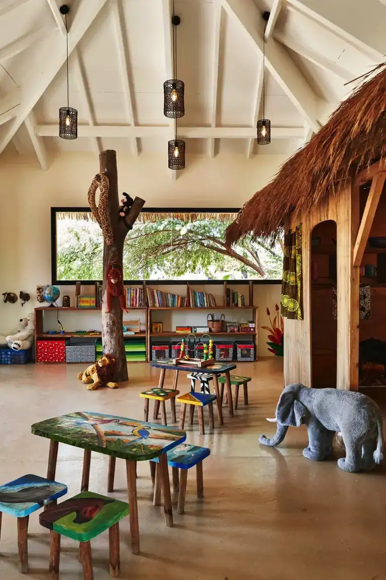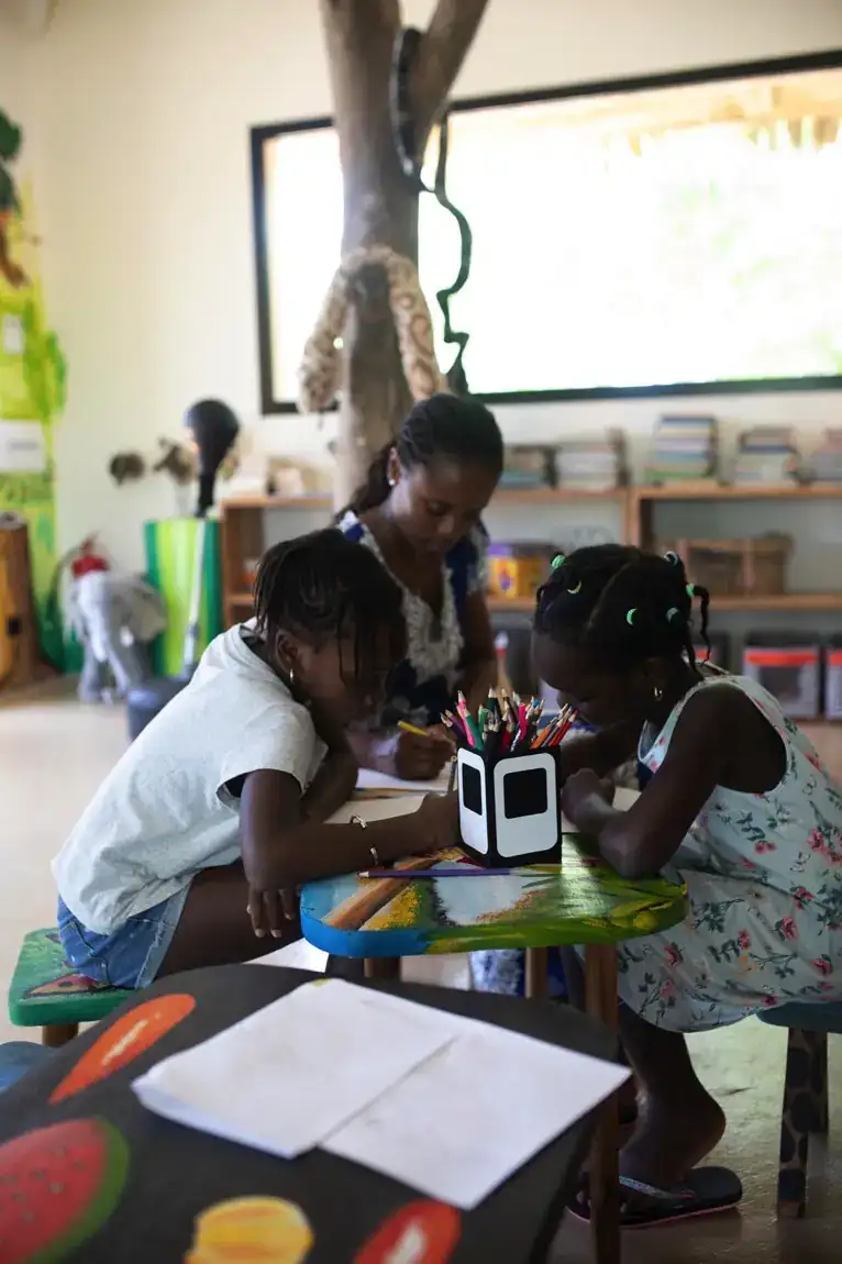 Vos enfants, encadrés par une équipe qualifiée et motivée, seront comblés par une extraordinaire salle de jeux avec à l’intérieur la réplique d’une case sénégalaise et de magnifiques peintures au mur représentant les paysages et animaux de l’Afrique.